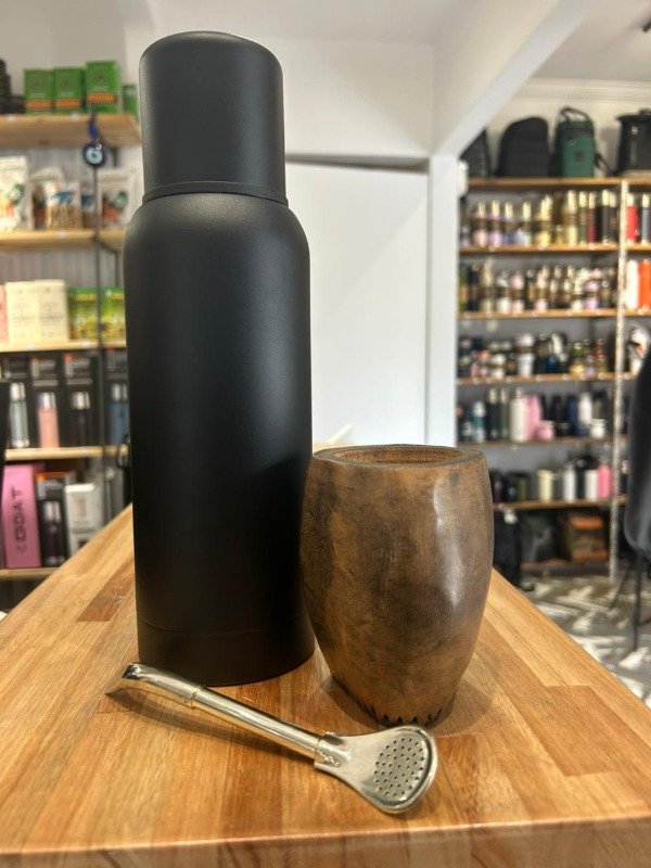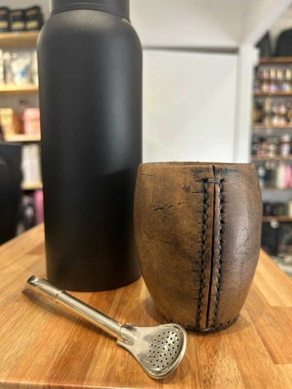 MATE RANCHERO DE ALGARROBO PULIDO REVESTIDO CON CUERO VAQUETA