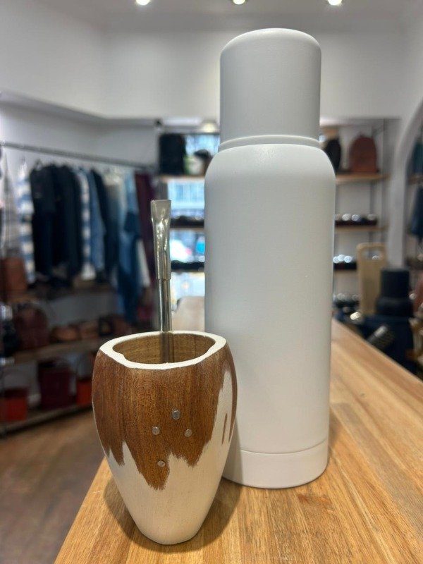 Combo ideal para amantes del mate, compuesto por un mate de algarrobo artesanal y una bombilla de alpaca coco tradicional premium. Perfecto para disfrutar de un buen mate en cualquier momento.